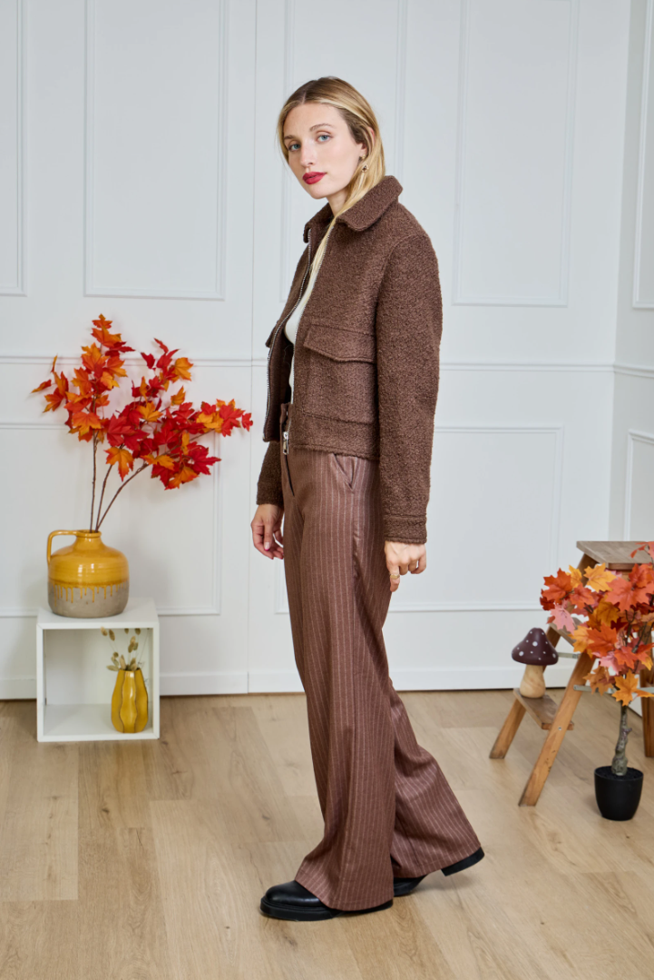 Atena — the cropped bouclé jacket that blends elegance with urban ease.