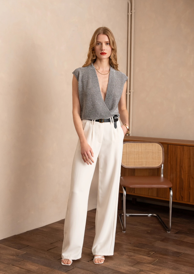 Pair with wide-leg trousers and a blazer for evening chic, or with a satin skirt and heels for a modern party look.