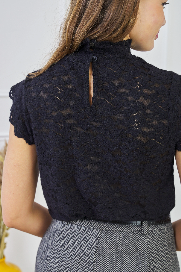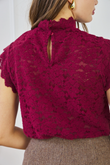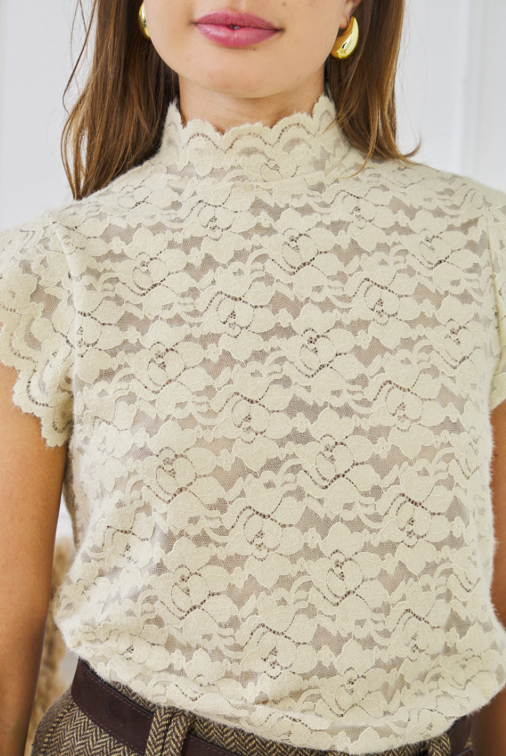 Stylish, feminine and surprisingly versatile. Filigrana is a lace top featuring a high, softly scalloped neckline and delicate cap sleeves. The floral lace feels gentle against the skin and has a touch of stretch, ensuring a close yet comfortable fit.