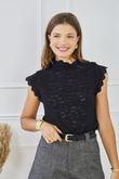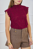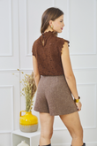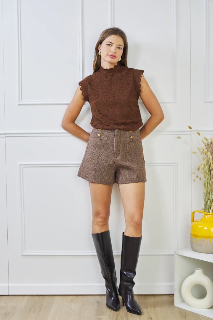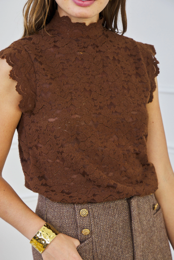 Beautiful with tweed shorts or tailored trousers, a satin midi skirt, or layered under a cropped blazer. Gold jewellery highlights the intricate lace texture of Filigrana.