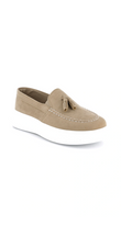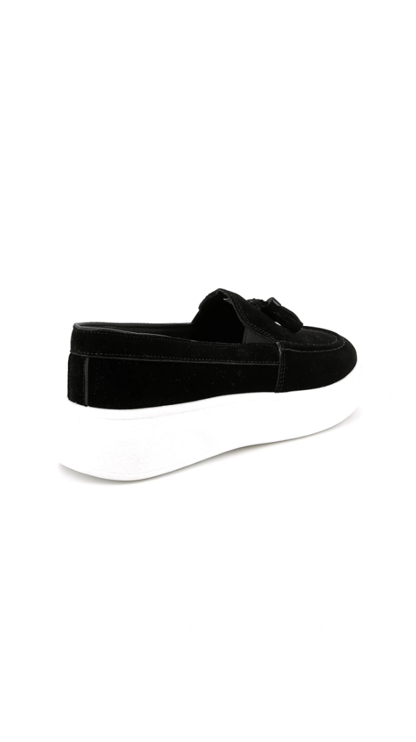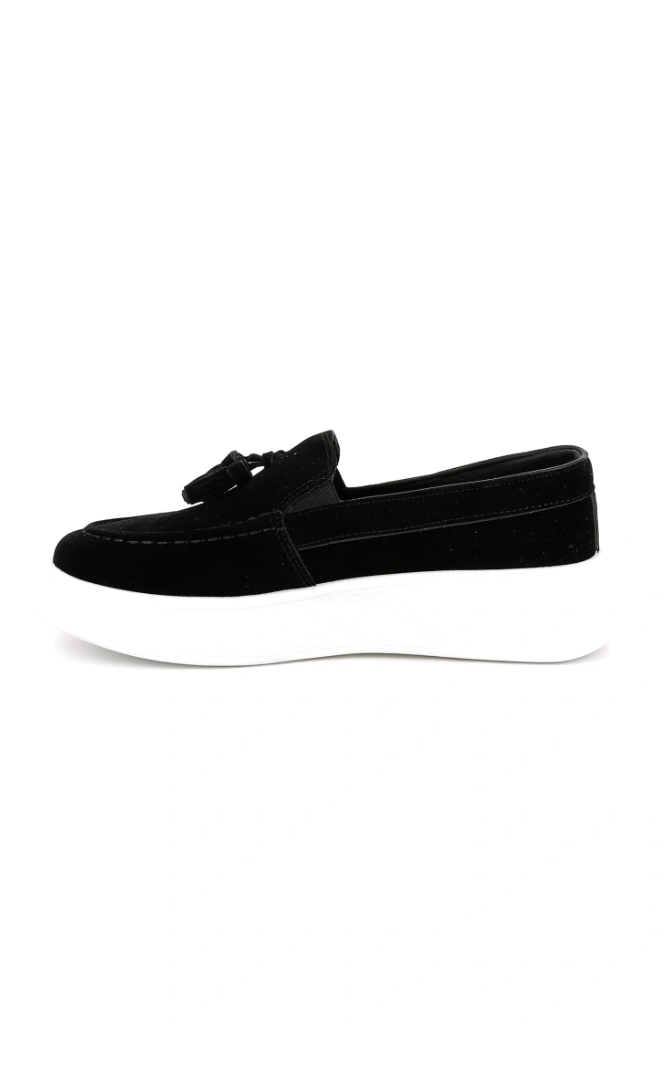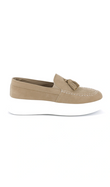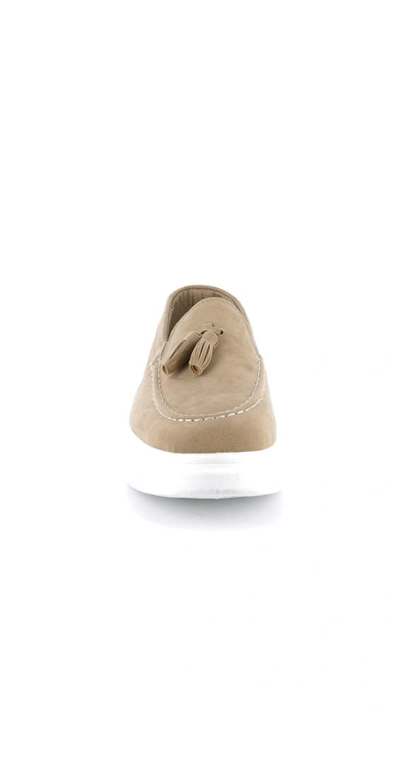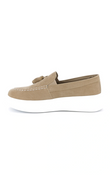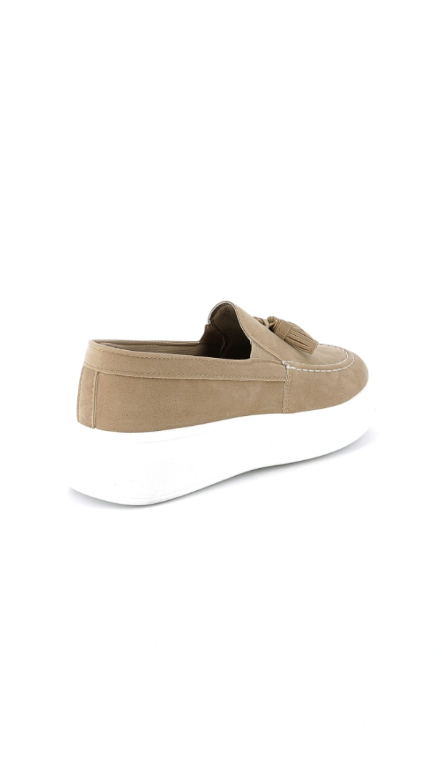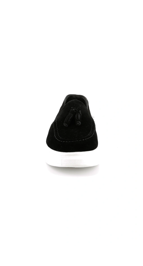 De relaxte loafer met sportzool en subtiele tassels. Zacht suède, cleane lijnen en een ultralichte witte zool maken ’m de perfecte mix van casual comfort en verfijnde nonchalance.