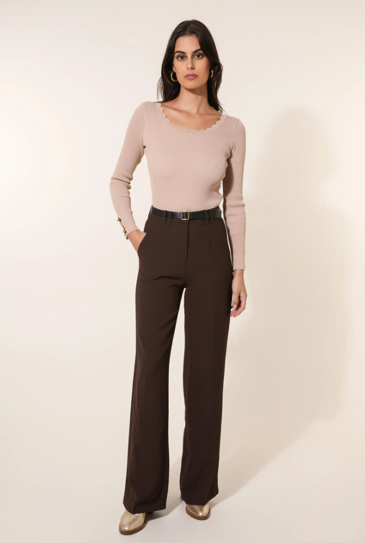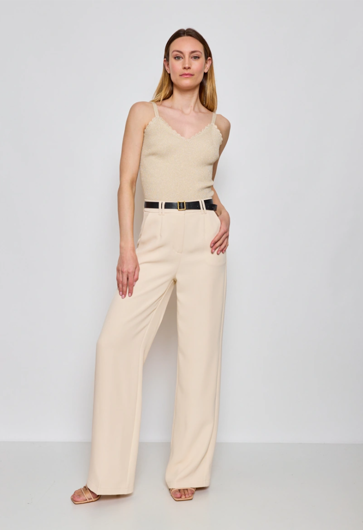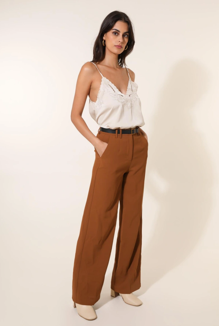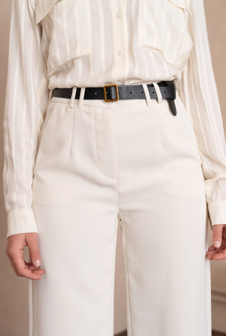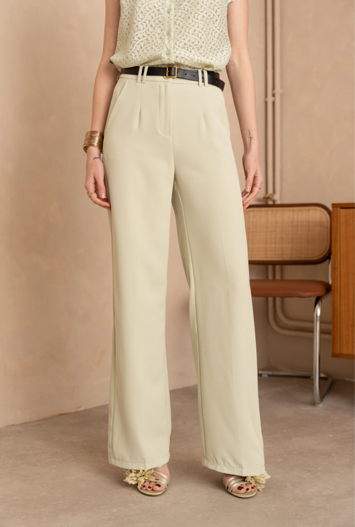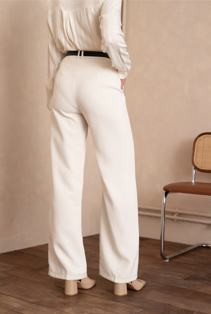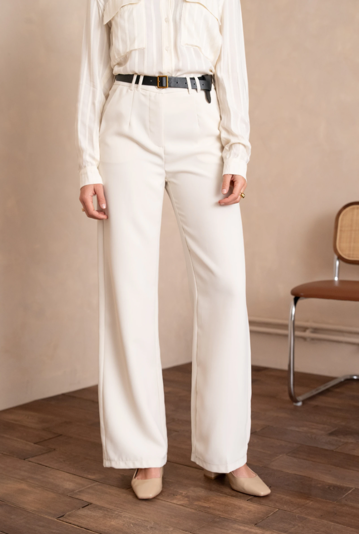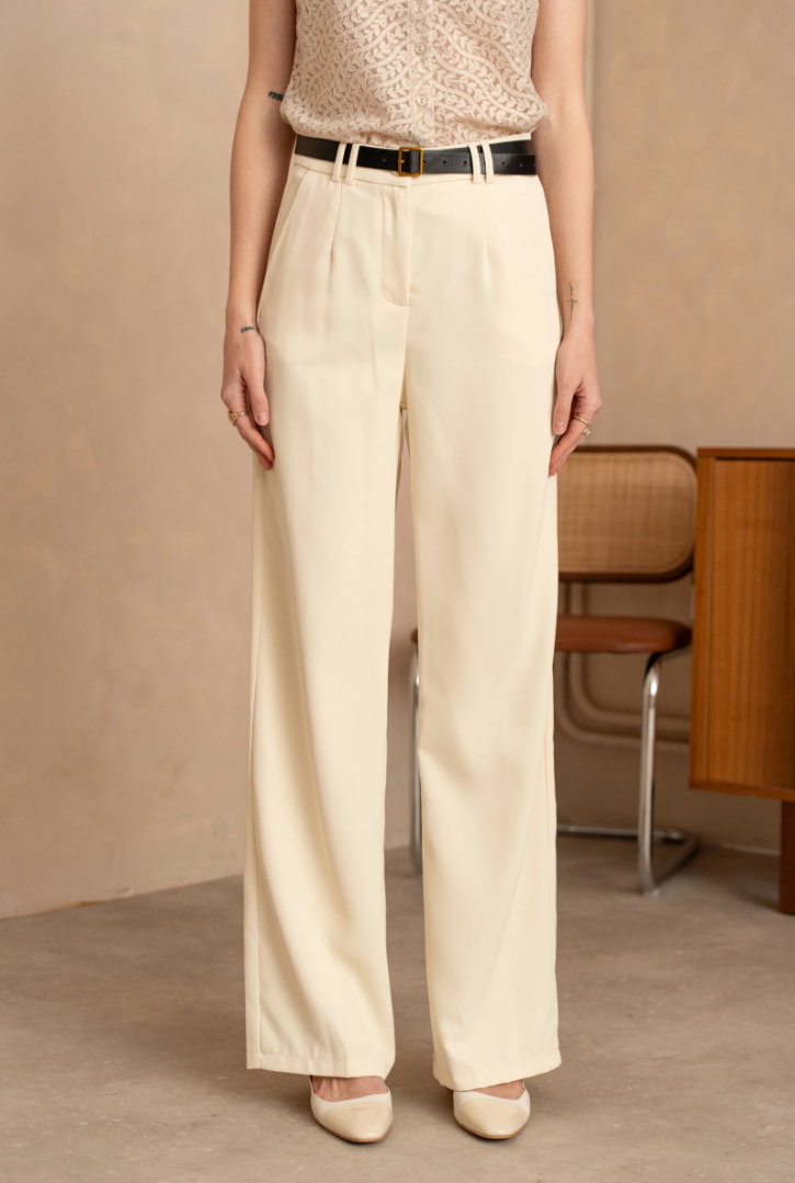 ✔ High waist & wide leg — elongates the legs with airy elegance.