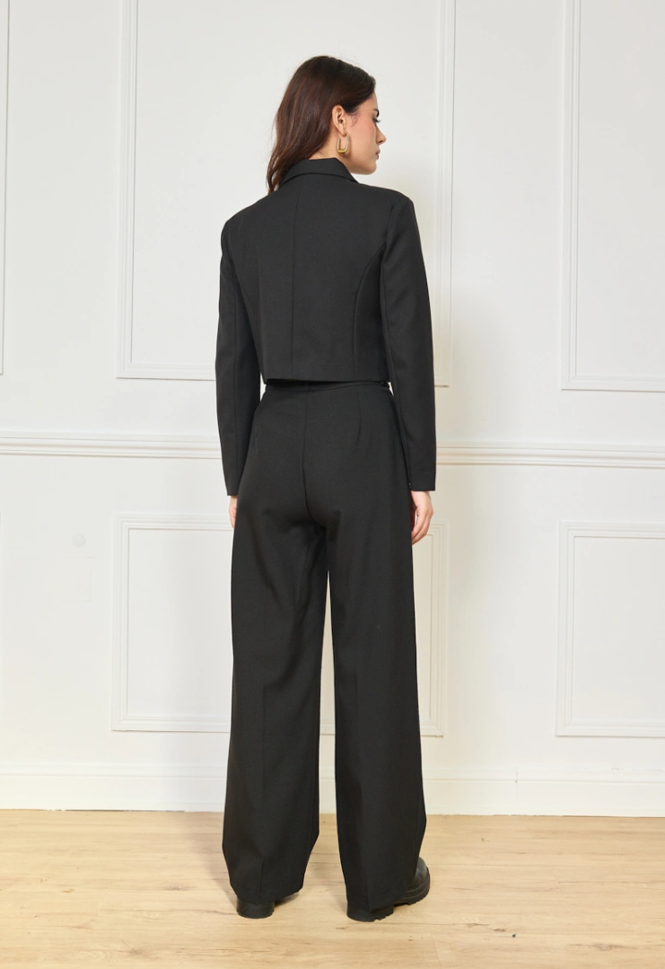 A modern cropped field jacket in supple suiting fabric with a subtle melange.