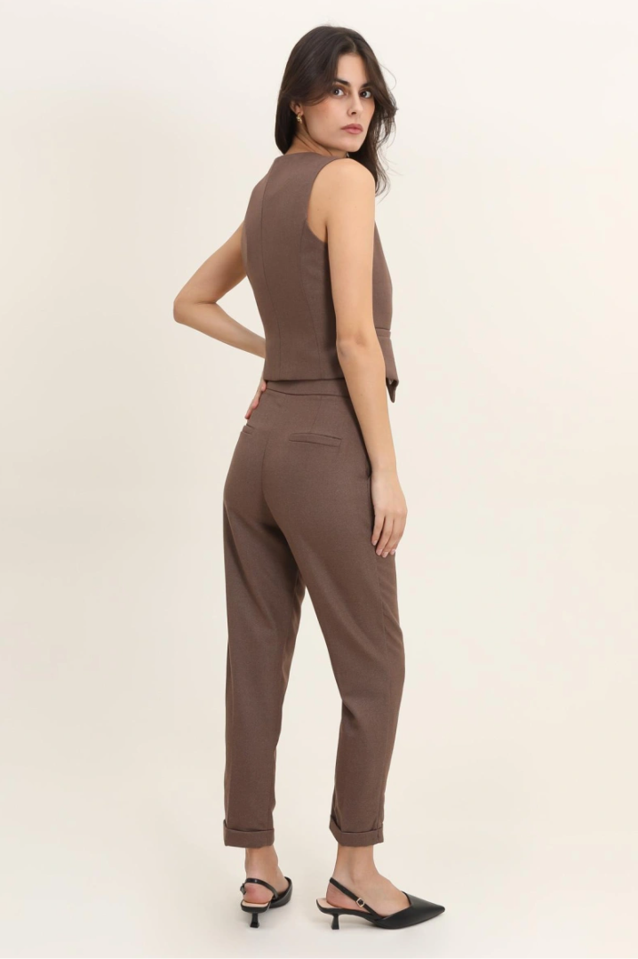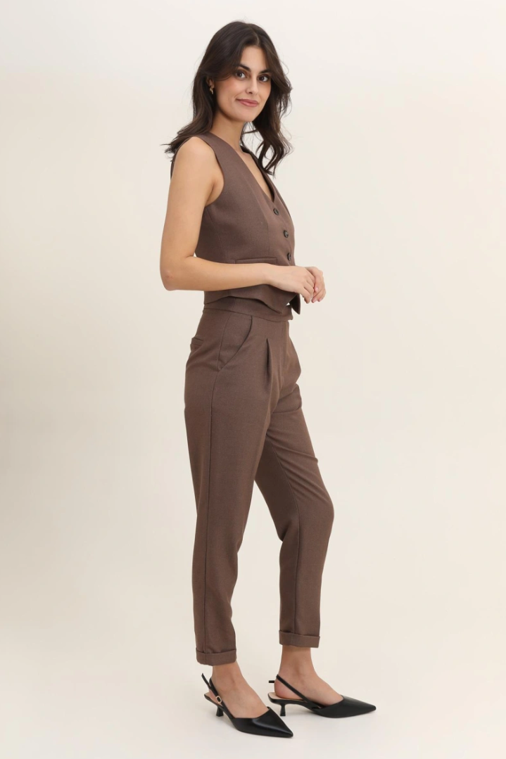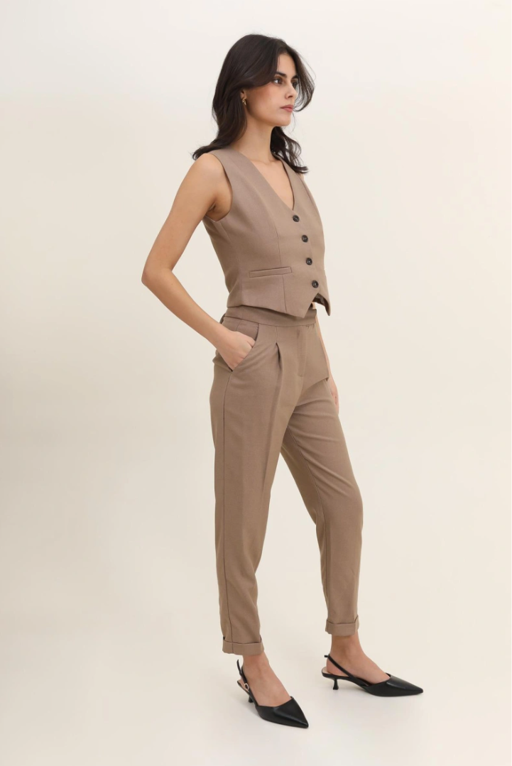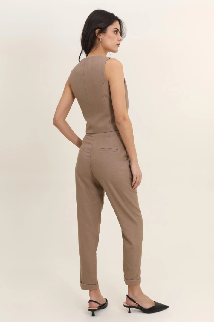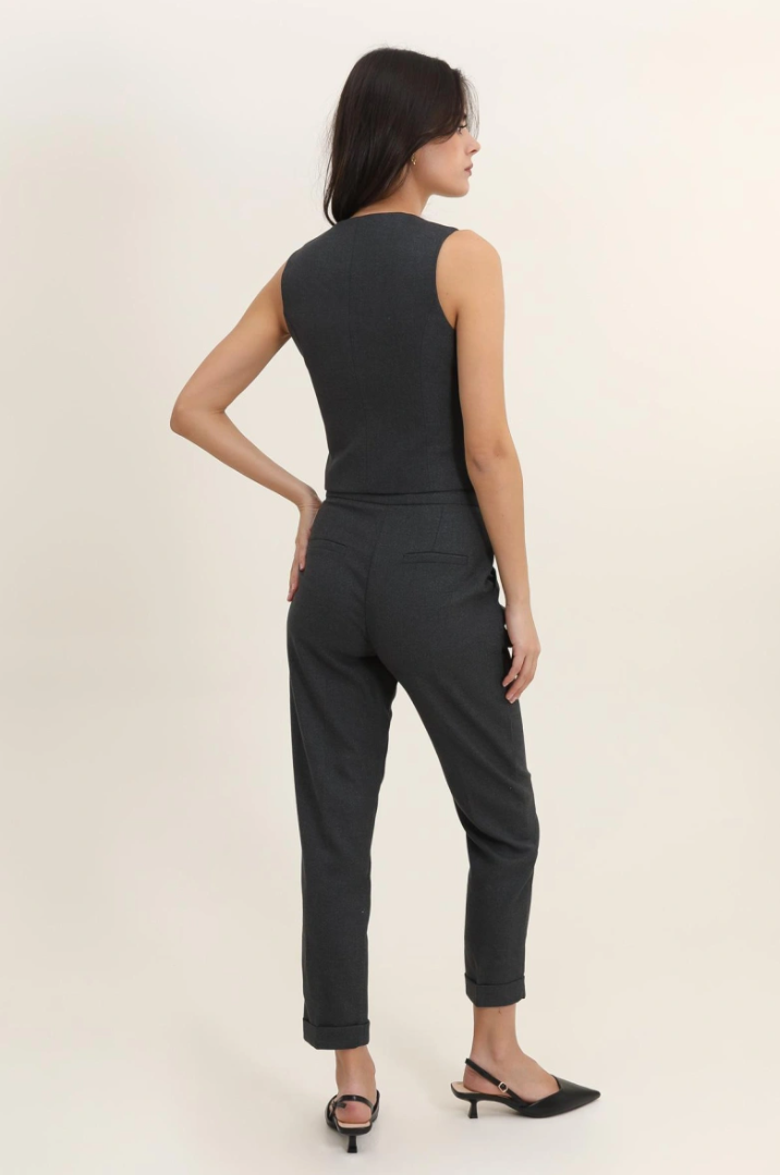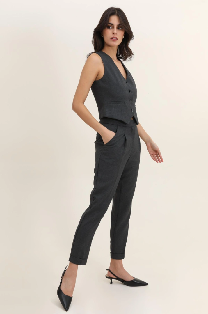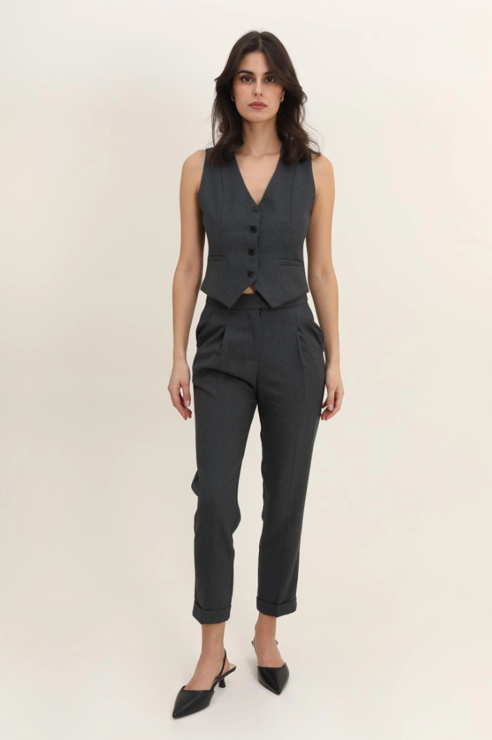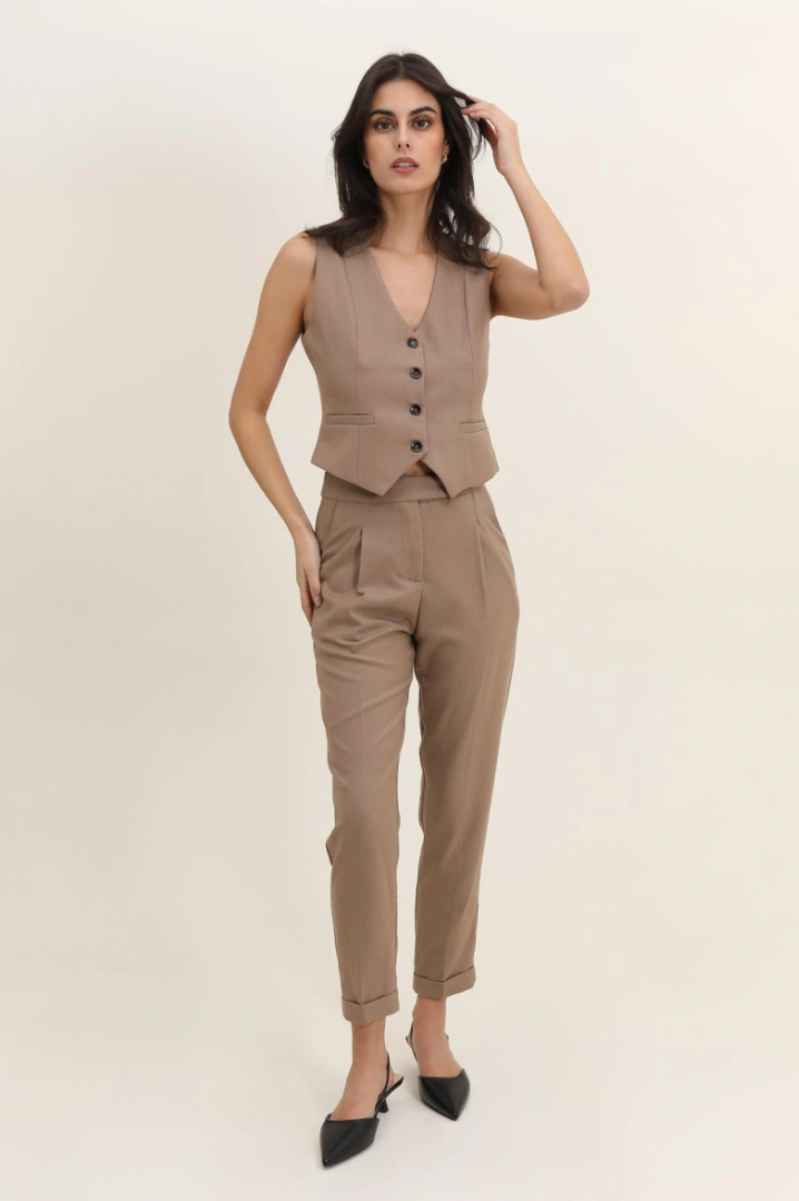 Draag ‘m als set met de Alto Cocoon Jas voor een utility-meets-tailoring look. Tip: laat de cocoon-vorm van de jas het silhouet omarmen en houd tops slank (coltrui, rib-tank, satijn cami) zodat de utility-meets-tailoring balans mooi blijft.