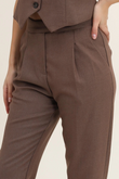 High-waist wide-leg broek in dezelfde lichte suiting met subtiele mélange en een tikje stretch als de Alto Cocoon Jas De nette tailleband met riemlussen, voorplooien en persvouw geven ‘m een geklede look, terwijl de relaxte pijp moeiteloos valt — perfect als modern city-pak.