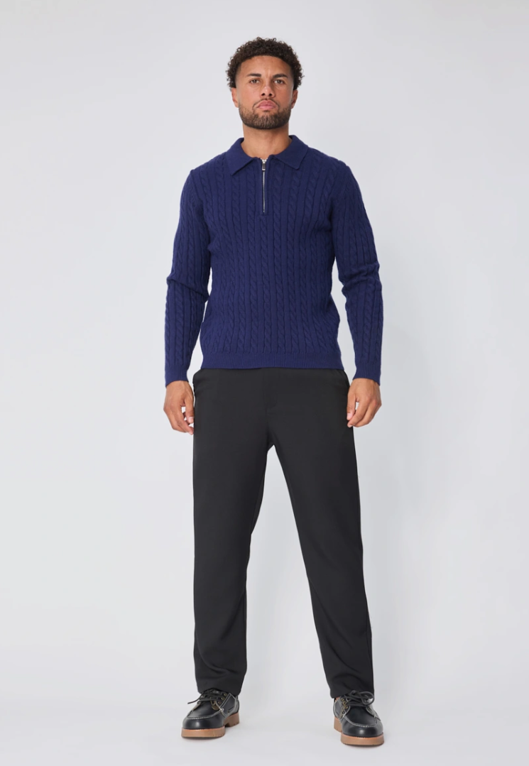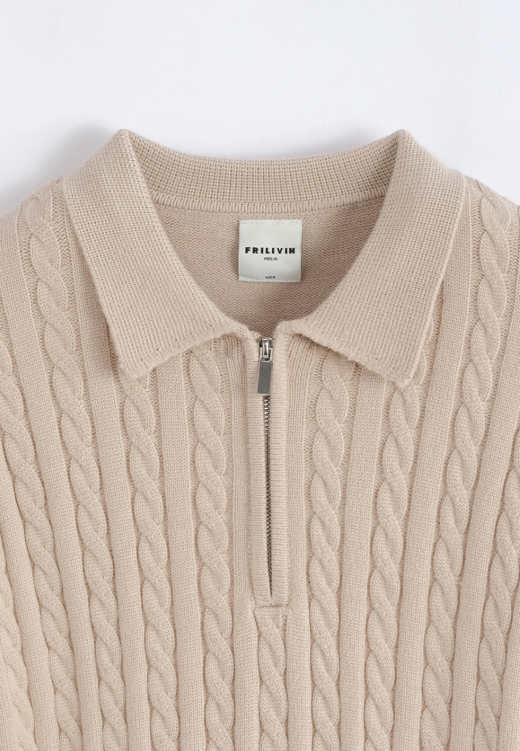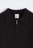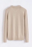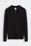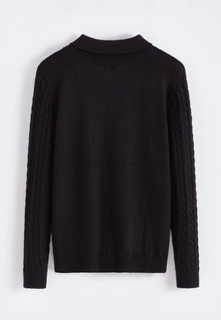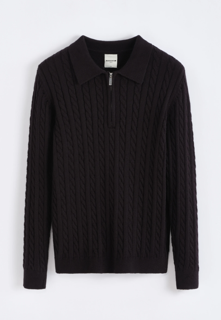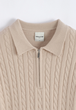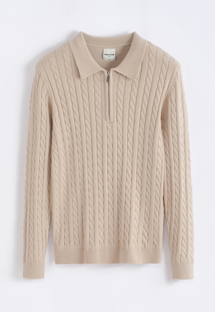 Fijngebreide kabelpolo met halve rits—een moderne interpretatie van klassiek Italiaans vakmanschap. De Austro Treccia Polo is uitgevoerd in een soepele viscosemix met subtiele glans en zachte grip. Het kabelpatroon (treccia) loopt verticaal voor een verfijnde, verlengende look, terwijl de compacte kraag en metalen ritssluiting zorgen voor een cleane, luxueuze afwerking.