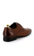 Een derby in soepel, natuurlijk leder met een subtiele glans die meteen klasse uitstraalt. De smalle, licht verlengde neus geeft het silhouet een moderne finesse, terwijl de lichte constructie zorgt voor moeiteloos draagcomfort—van kantoor tot avondkleding.