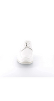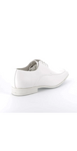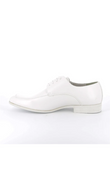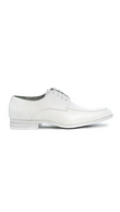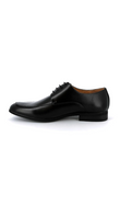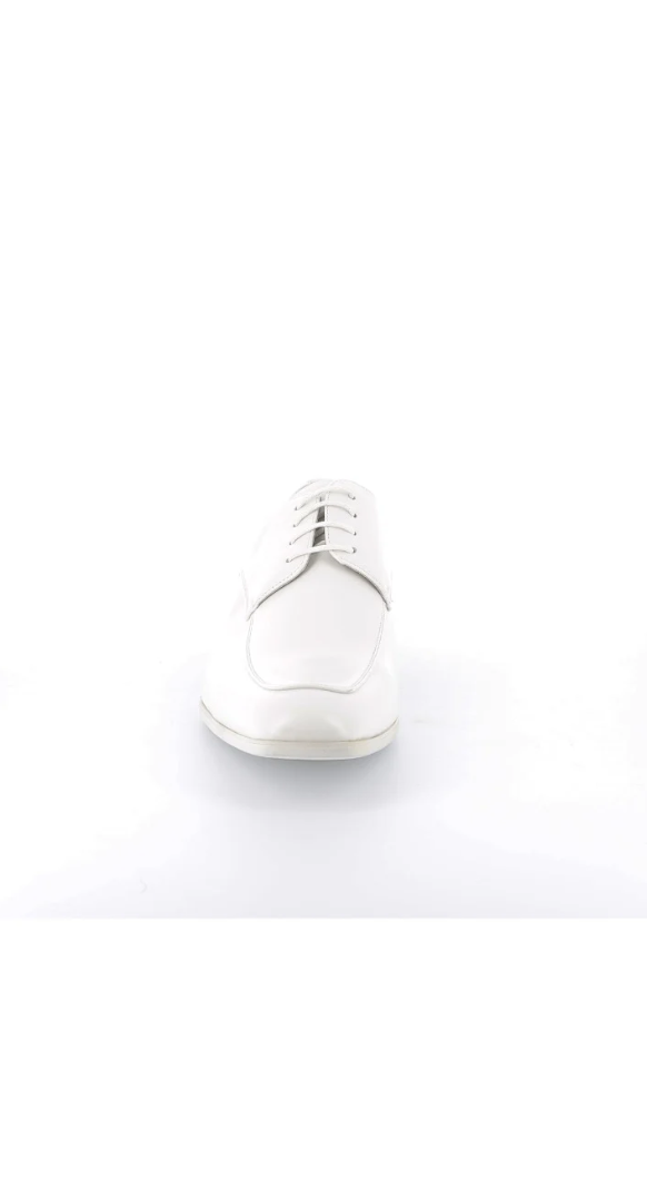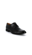 Slanke derby met open vetersluiting en een verfijnde apron-naad. De subtiele glans en strakke lijnen geven ’m een scherpe, moderne look die moeiteloos werkt onder een pak, chino of dark denim.