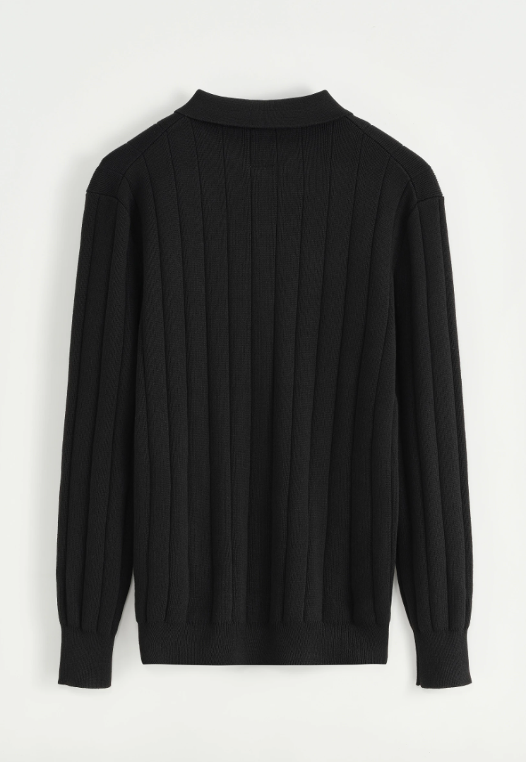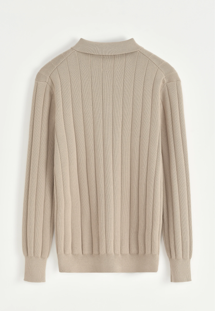 Verfijnde eenvoud in ribgebreid katoen. De Nomea Rib Polo combineert de uitstraling van een overhemd met het comfort van een trui — een moderne klassieker die soepel valt en moeiteloos klasse uitstraalt. De verticale ribstructuur verlengt het silhouet en geeft de stof subtiele diepte.