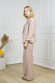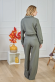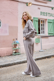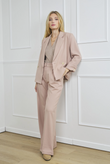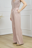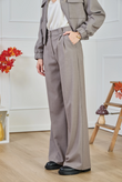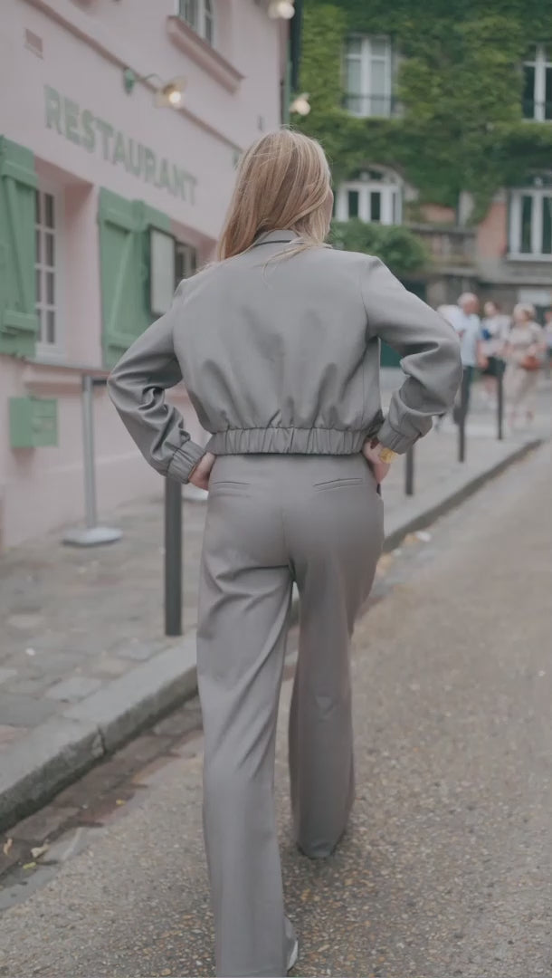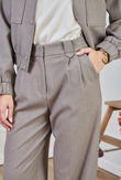 High-waist wide-leg broek in dezelfde lichte suiting met subtiele mélange en een tikje stretch als de Giacca Corta Utility Blazer. De nette tailleband met riemlussen, voorplooien en persvouw geven ‘m een geklede look, terwijl de relaxte pijp moeiteloos valt — perfect als modern city-pak.