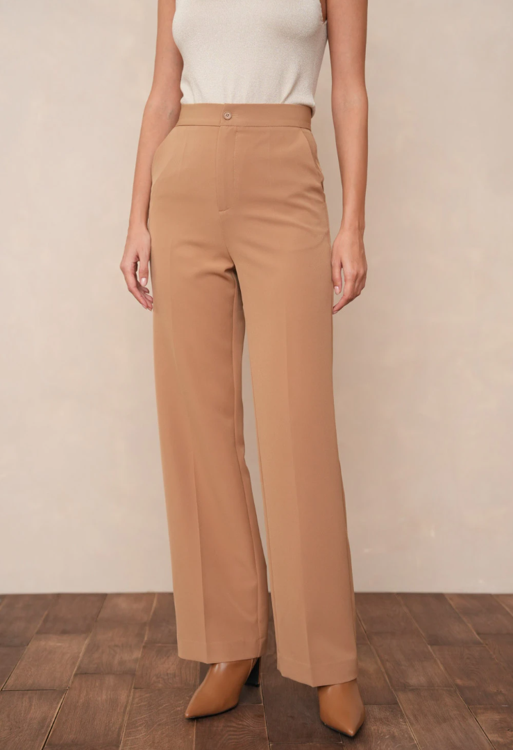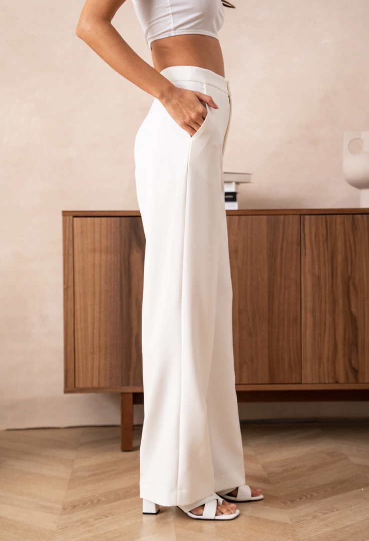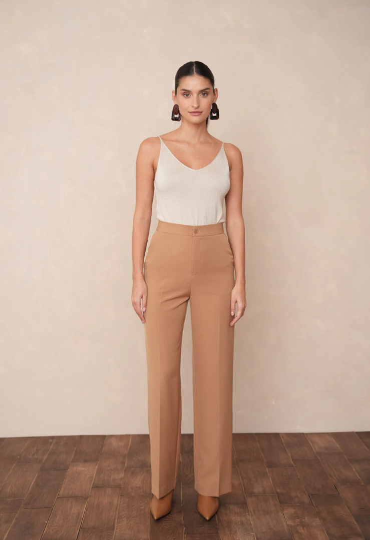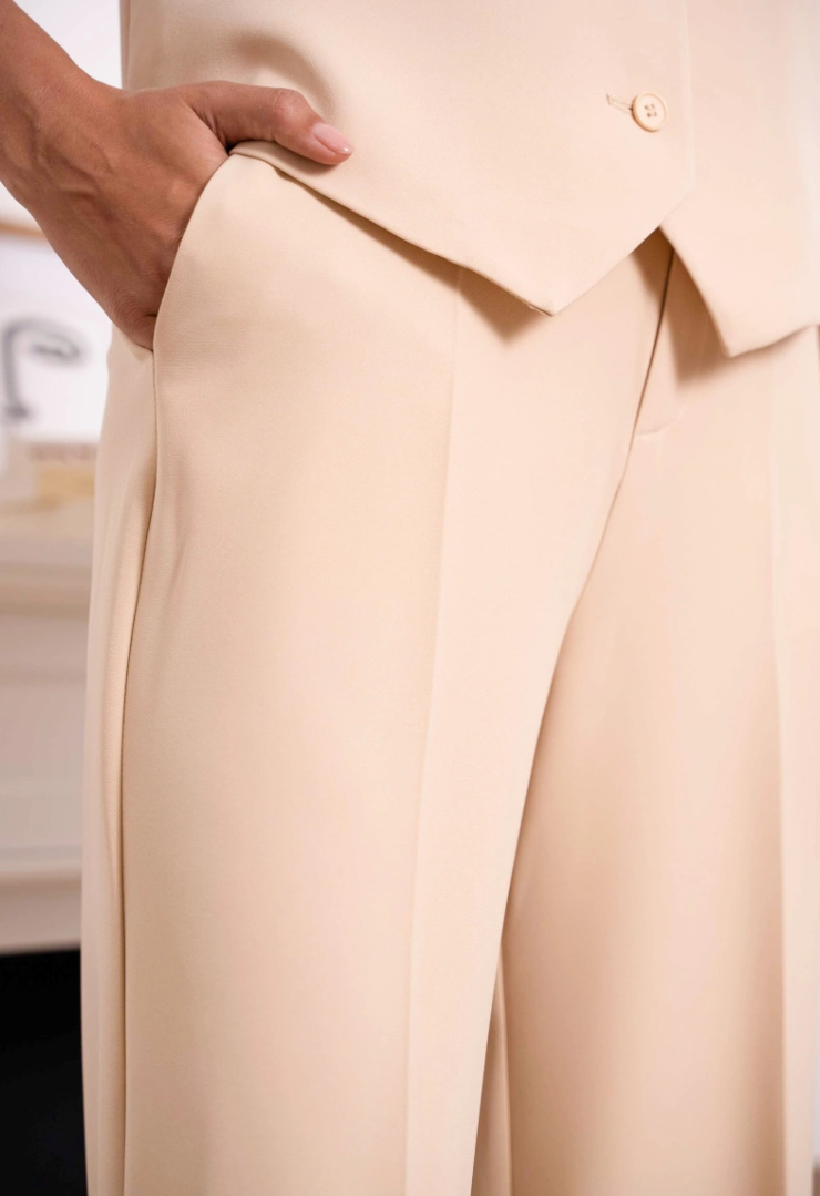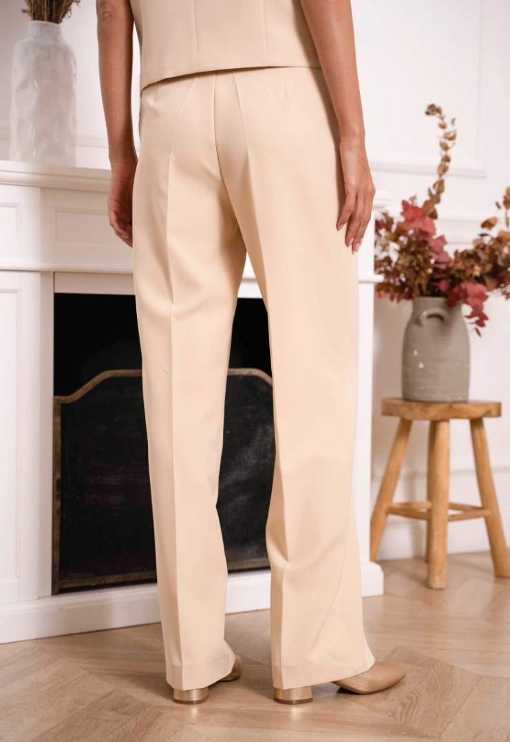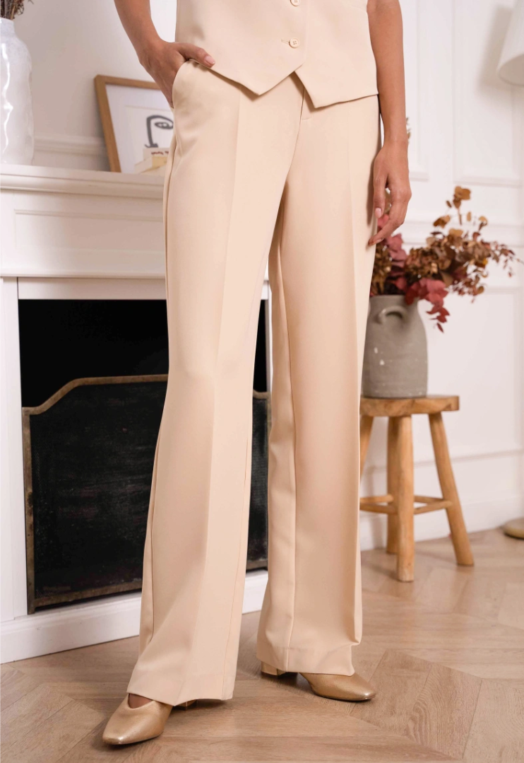 Rechte, wijde pijp met persvouw voor lengte en een elegante valling.