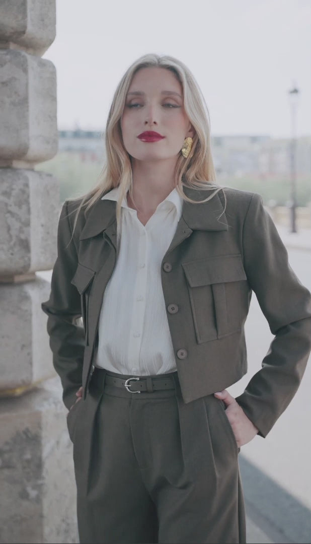 Cachi — Kaki — olijf-khaki, utility-chic en makkelijk te combineren.